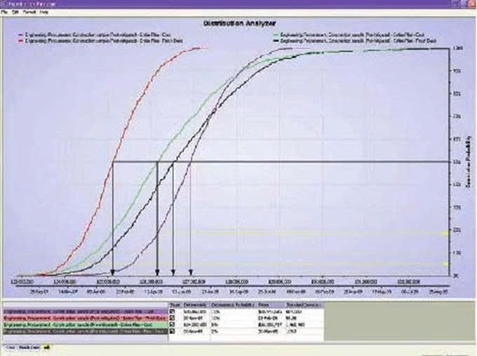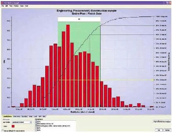 Primavera Risk Analysis sử dụng mô phỏng Monte Carlo để phân tích các loại rủi ro như bất định ước tính, phân nhánh xác suất, bất định chi phí, bất định nguồn lực và tác động thời tiết.
